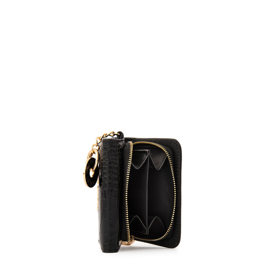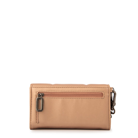 Monedero con bolsillo frontal pequeña vania rosa metalico