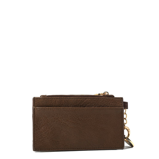 Tarjetero con bolsillo frontal genova pequeña café oscuro