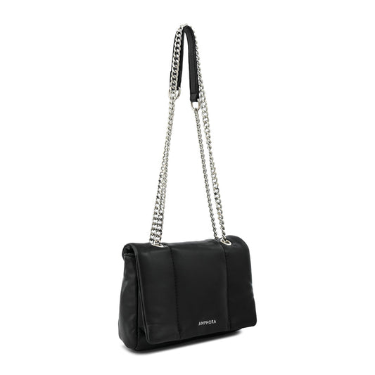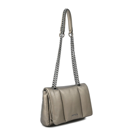 Cartera bandolera con tapa mediana elian plateado oscuro
