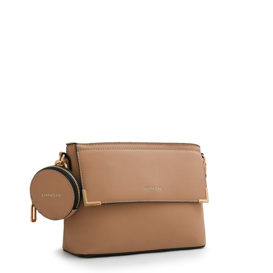 Cartera Bandolera con tapa mediana corcega beige oscuro