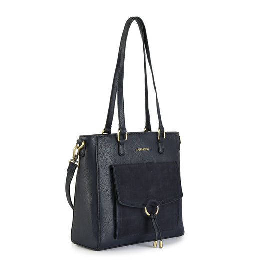 Cartera tote Tres divisiones mediana lya azul oscuro