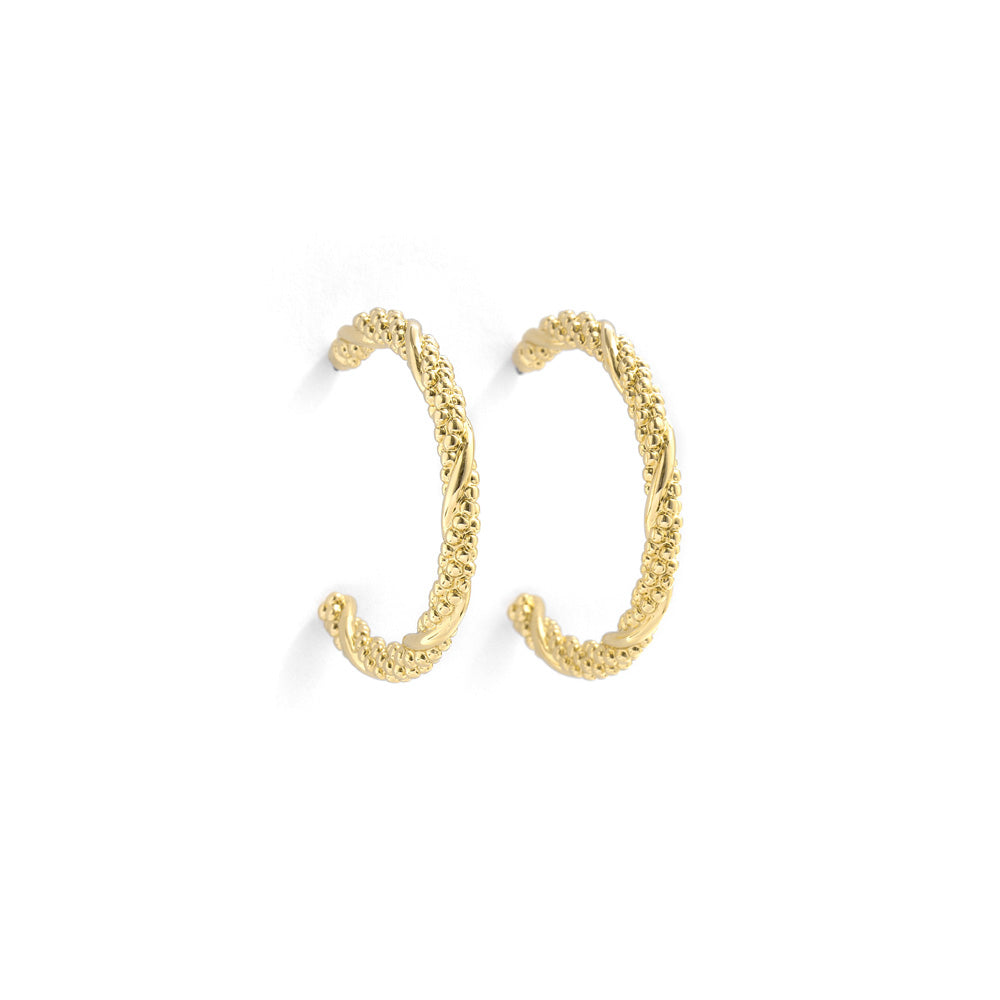 El poder del dorado en su máxima expresión con #Rany. Estos aros de argolla, fabricados en metal dorado claro con baño de oro 18K, son la declaración de estilo que estabas buscando. Con su tamaño perfecto y diseño elegante, #Rany aporta un toque sofisticado y moderno a tu look. El cierre de tuerca asegura comodidad y seguridad, manteniéndolos en su lugar todo el día. #Rany es el accesorio que necesitas para elevar tu estilo sin esfuerzo.