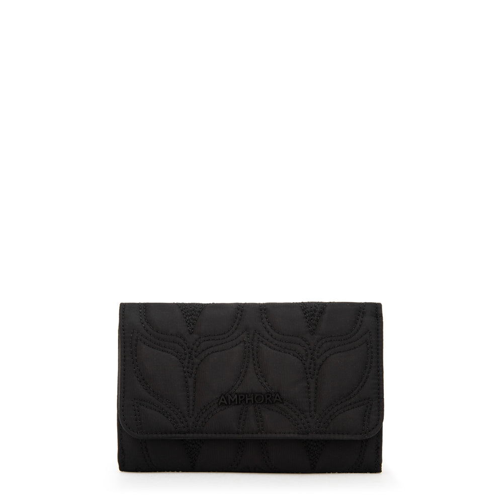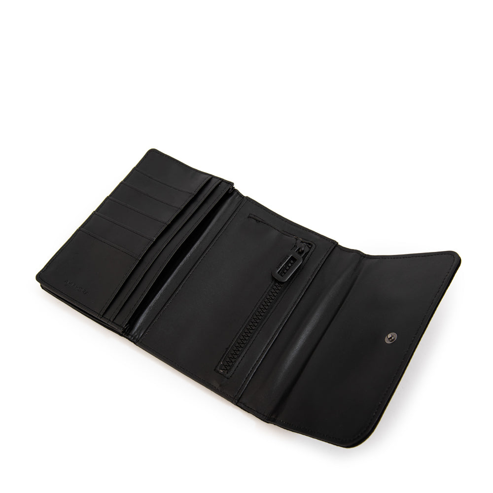 ¡La billetera que lo tiene todo! Trinidad en su versión acordeón es práctica, moderna y perfecta para el ritmo del día a día. Confeccionada en eco cuero con y detalles en metal negro, tiene un diseño que combina estilo y funcionalidad. Su apertura con broche es segura y cómoda. Si buscas un complemento liviano, compacto y con actitud, la billetera negra Amphora by #TriniGuzmán es ideal