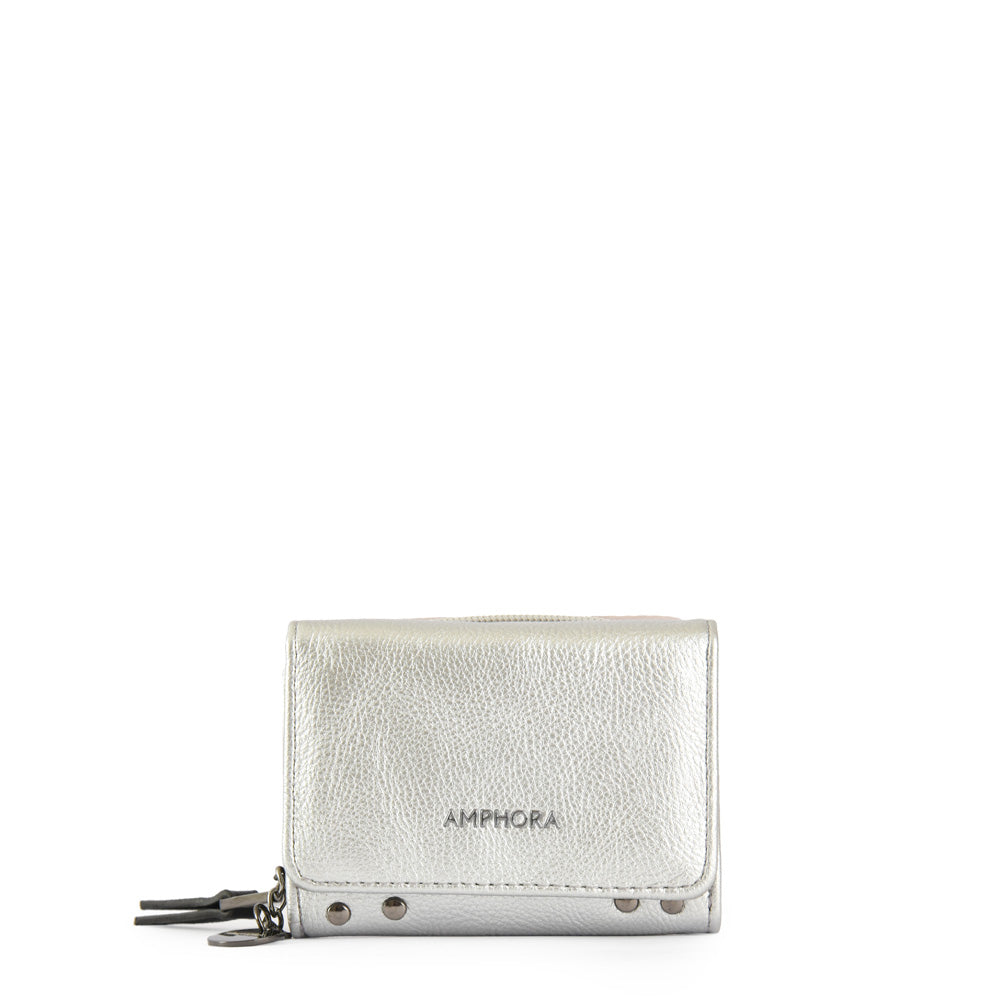 Billetera Cierre Exterior Pequeña Catriel Plateado