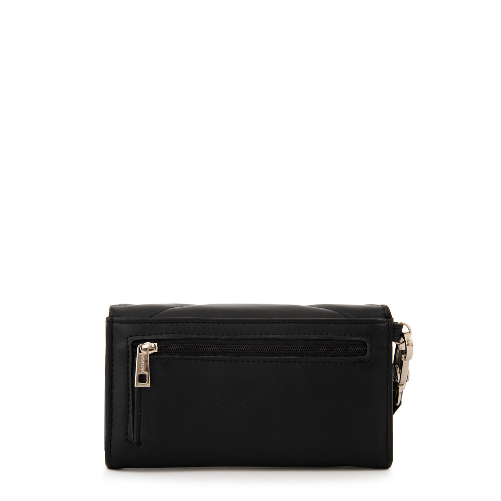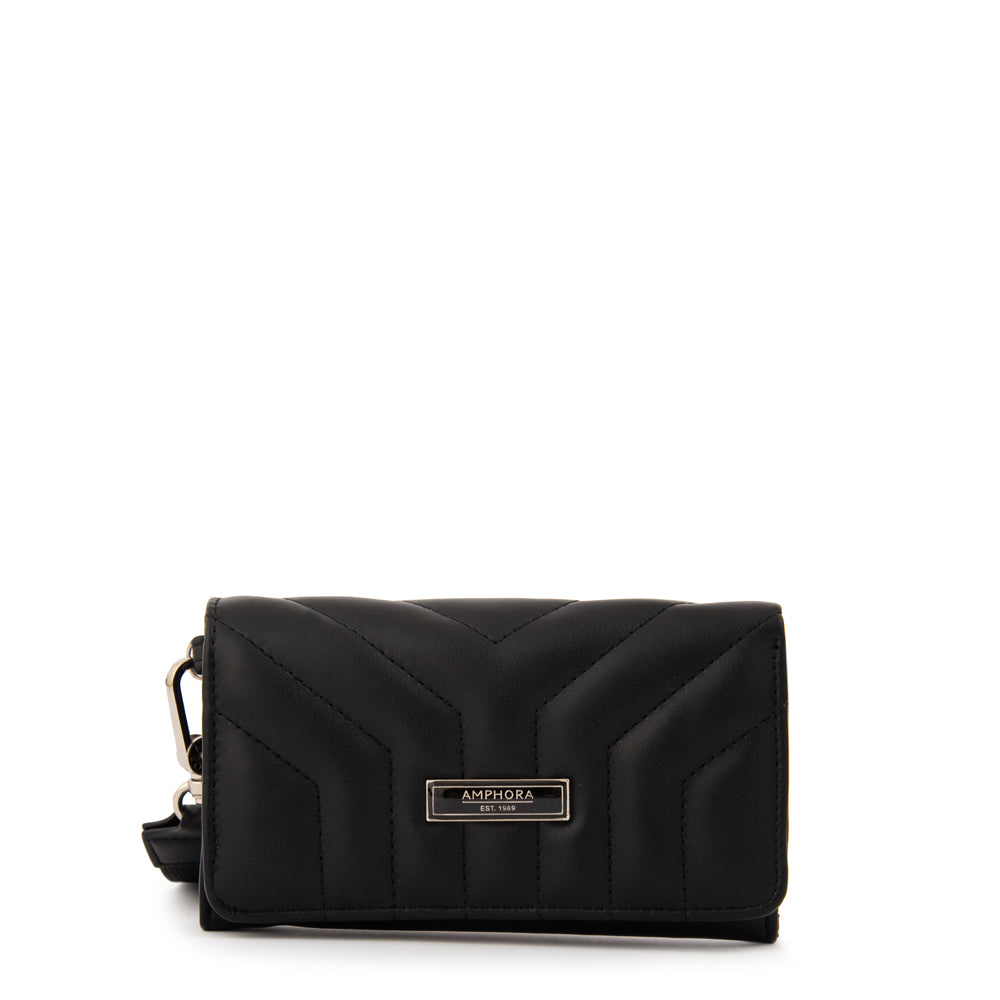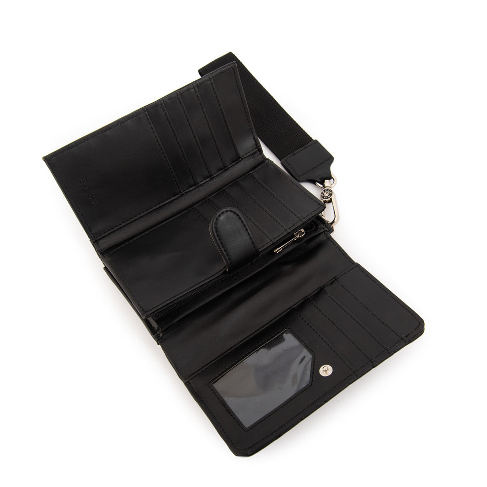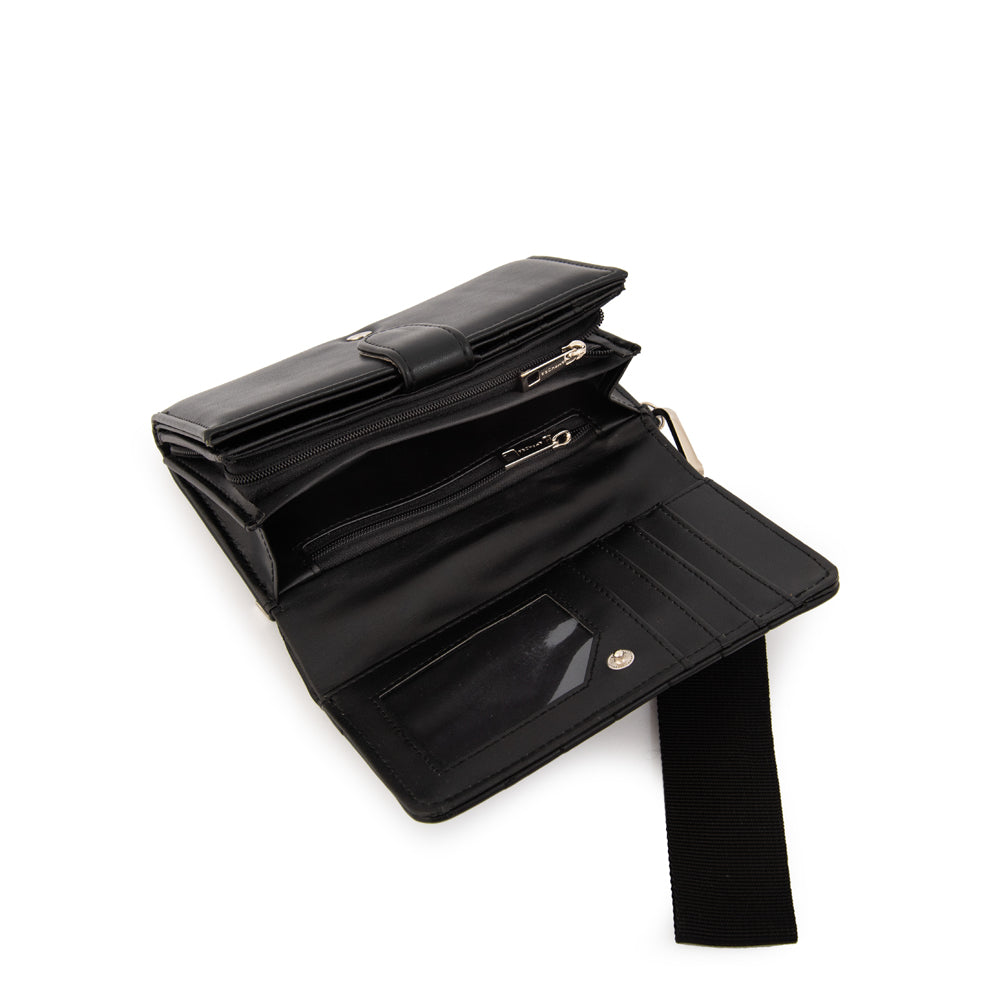 Classic & refined! La billetera Armenia en negro es un básico atemporal que combina practicidad y elegancia. Confeccionada en ecocuero grano con broche niquelado y un diseño compacto de 10 cm de alto y 16 cm de ancho, es el accesorio ideal para mantener todo en orden con estilo. Timeless elegance in your hands!