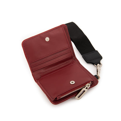 Statement piece! La billetera Armenia en rojo es una apuesta segura para quienes buscan estilo y organización. Hecha en ecocuero grano con broche niquelado, sus 10 cm de alto y 12 cm de ancho ofrecen el espacio justo para lo esencial. A bold touch for your daily routine!