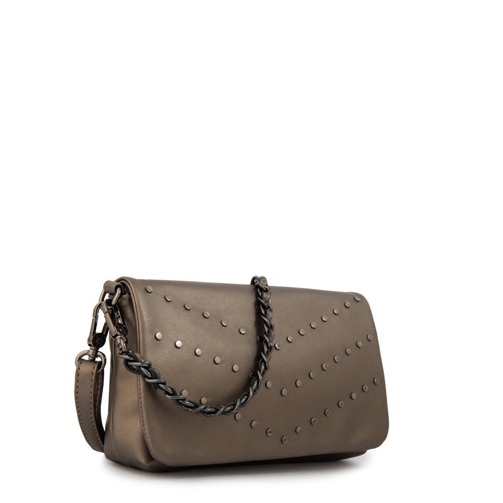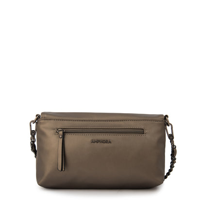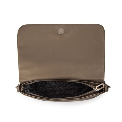 Cartera Bandolera con tapa mediana huber plateado oscuro