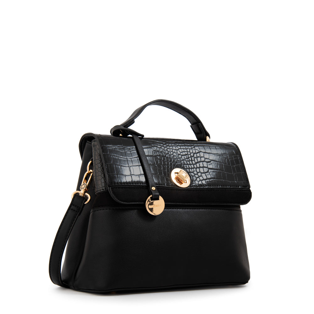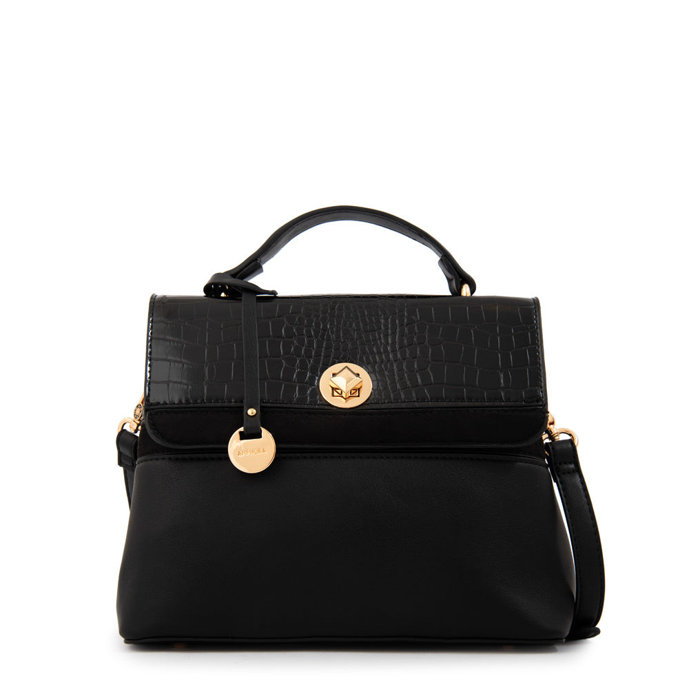 Classic with a twist! La bandolera Aline en negro es ese esencial que combina practicidad con un diseño atemporal. Su estructura en ecocuero graneado con tapa y broche dorado le da un toque sofisticado sin esfuerzo. Pequeña pero funcional, con compartimentos internos bien distribuidos para que lleves lo necesario sin perder el orden. Llévala ahora y dale un upgrade a tu look!