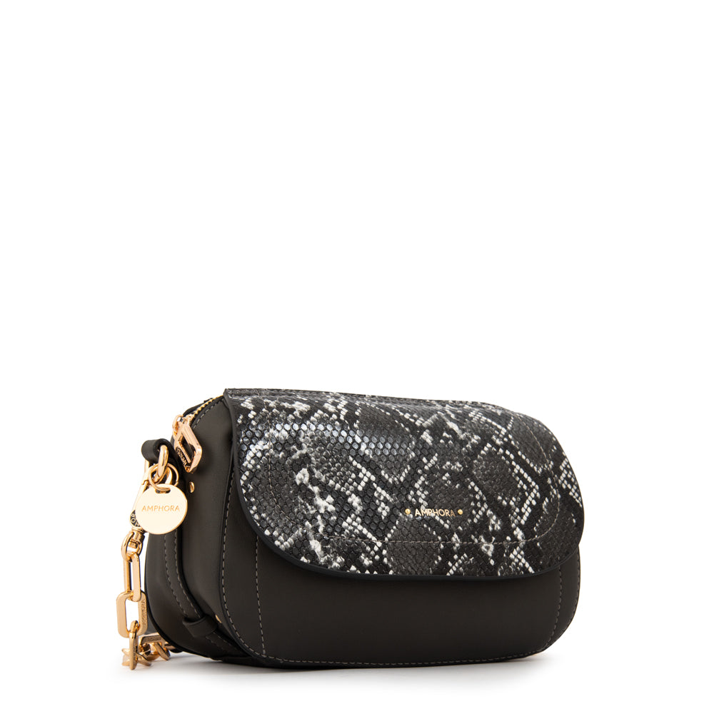 Cartera Bandolera con tapa pequeña greta gris oscuro