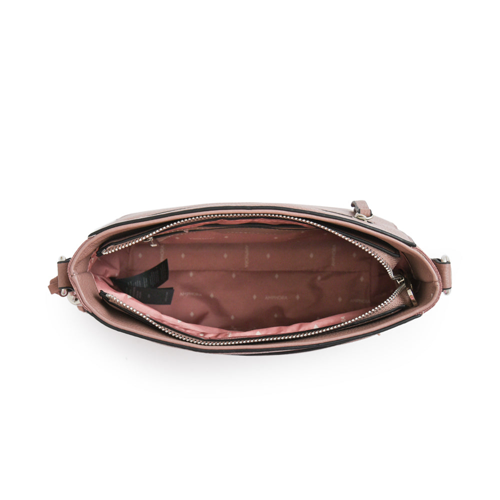 Keep it chic con la bandolera Etiopía en rosa viejo. Su material en ecocuero con textura y detalles en niquelado crean un look fresco y versátil, mientras que su colgante decorativo suma un extra de personalidad. Con 23 cm de alto y 28 cm de ancho, esta bandolera mediana equilibra tamaño y funcionalidad a la perfección. Su correa ajustable te permite llevarla cómodamente, y su cierre seguro resguarda tus esenciales. One bag, endless possibilities.