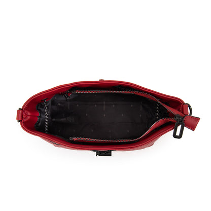 #Muller is a fashion statement. Confeccionada en cuero vegano de alta calidad, esta cartera bandolera color rojo oscuro es la combinación perfecta de sofisticación y durabilidad. Su diseño elegante y minimalista se adapta a tu rutina. La correa ajustable te permite llevarla cómodamente cruzada al hombro o al cuerpo, cierre con botón imantado garantiza la seguridad de tus cosas, mientras que su bolsillo exterior y tres interiores te permiten organizar tus esenciales de manera eficiente.