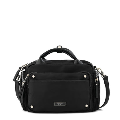 #Sabrina is so nice! una bandolera negra con actitud. Confeccionada en nylon con un acabado metalizado que marca tendencia, esta cartera es la definición del estilo sporty chic. Su diseño funcional y versátil se adapta a tu ritmo de vida, desde un día de shopping hasta una noche con amigas. Con 5 bolsillos exteriores y 3 interiores, tendrás espacio de sobra para tus esenciales y mucho más. La correa ajustable te permite llevarla cruzada o al hombro, como prefieras. Si buscas una cartera bandolera mujer, #Sabrina es una opción cool para ti.