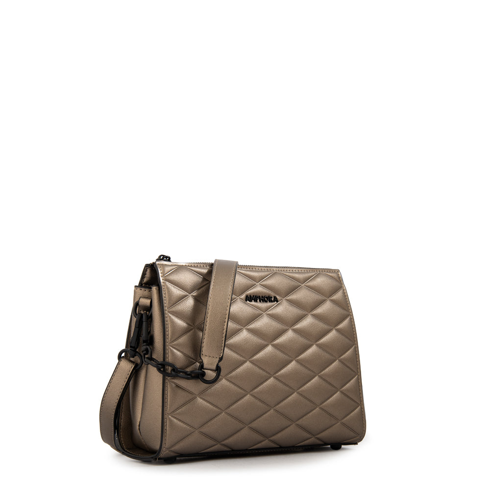 Always on the move. La bandolera Suiza en plateado oscuro le da un twist a tu outfit sin esfuerzo. Su diseño en ecocuero liso, con cierre seguro y correa ajustable, es perfecto para moverte sin preocupaciones. Espaciosa sin ser grande, cómoda sin perder estilo. Get yours and keep it moving!