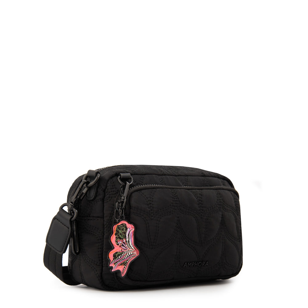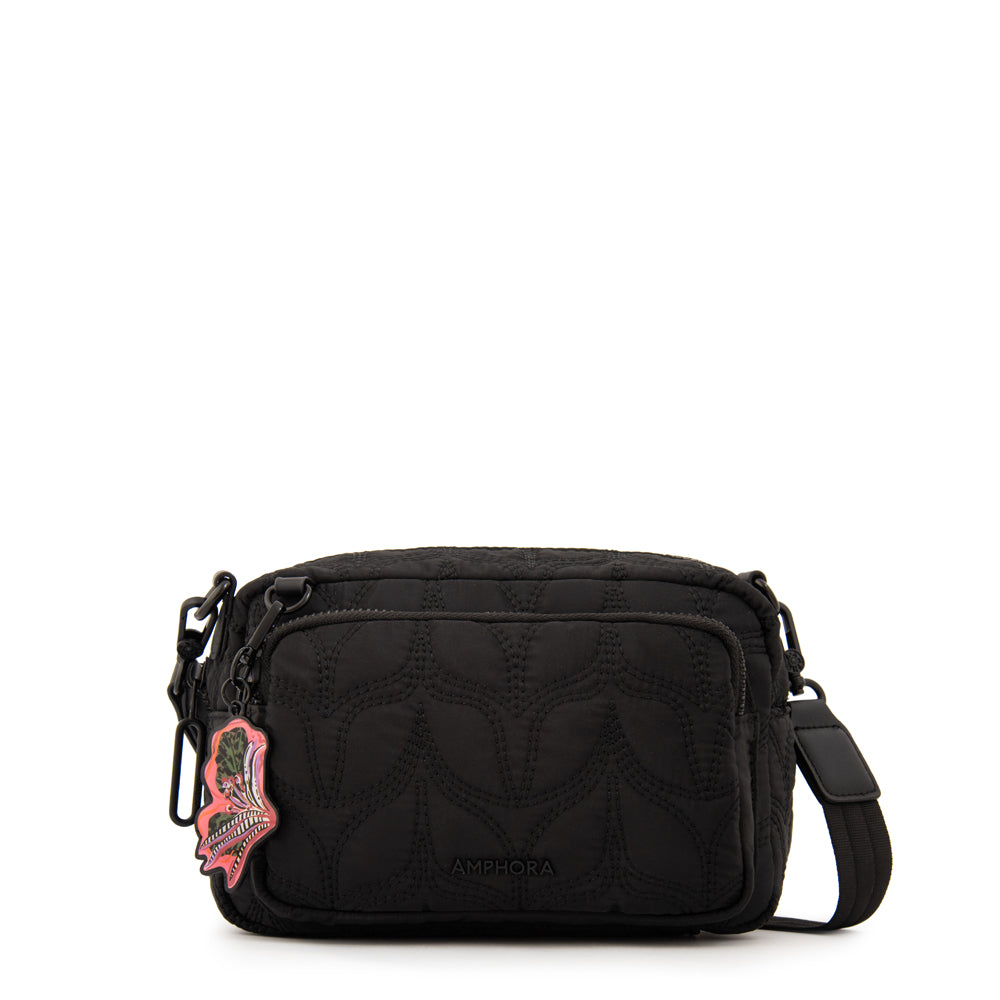 La Bandolera Trinidad es todo lo que necesitas para un look práctico y con estilo. Hecha de nylon negro y acabados en metal, tiene el tamaño perfecto para llevar tus esenciales de forma cómoda y organizada. Con cierre seguro y varios bolsillos, tanto interiores como exteriores, es ideal para el día a día. Atrévete a llevar tu estilo al siguiente nivel con la bandolera negra Amphora by #TriniGuzmán
