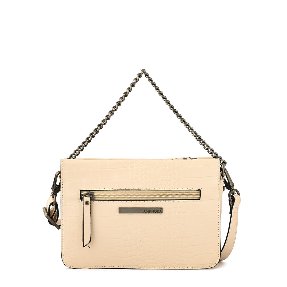 Trend alert! Nuestra bandolera Anaya, confeccionada en material Croco, es pura elegancia y estilo. Este modelo de Amphora de tamaño pequeño, es ideal para darle un toque chic a la tenida. Cuenta con tres bolsillos internos con cierre, uno externo y uno en la parte trasera. Además, posee un colgante de cadena como accesorio para el bolso. Anaya es perfecta para una salida casual con amigas.