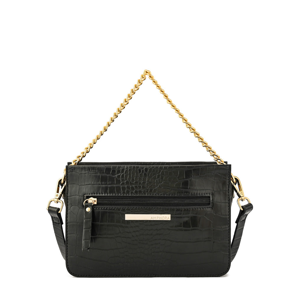 Trend alert! Nuestra bandolera Anaya, confeccionada en material Croco, es pura elegancia y estilo. Este modelo de Amphora de tamaño pequeño, es ideal para darle un toque chic a la tenida. Cuenta con tres bolsillos internos con cierre, uno externo y uno en la parte trasera. Además, posee un colgante de cadena como accesorio para el bolso. Anaya es perfecta para una salida casual con amigas.