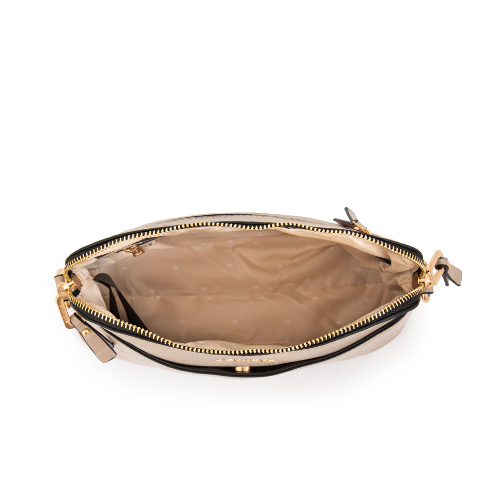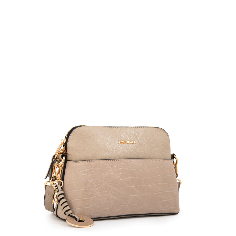 Keep it classy with #Genova. Confeccionada en cuerina texturizada, esta cartera bandolera beige es esencial para quienes buscan un accesorio elegante y funcional. Su diseño atemporal se complementa con un colgante que le da un toque distintivo. La correa ajustable ofrece versatilidad para llevarla al hombro o cruzada, adaptándose a tu estilo personal. Sus múltiples bolsillos (2 exteriores y 3 interiores) te permiten organizar tus pertenencias de manera práctica. Si buscas una bandolera Amphora para el día a día, #Genova es una excelente elección.