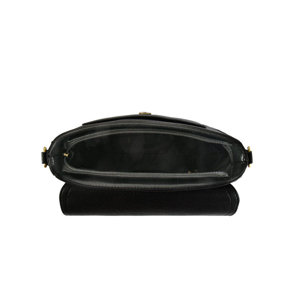 We love #Lya! Porque es sutil, versátil y con mucha actitud, esta bandolera con correa ajustable es para quienes se atreven a ver el mundo a su manera. Fabricada en ecocuero negro con detalles dorados, nos entregan un diseño compacto pero funcional, permitiéndote llevar lo esencial sin renunciar al estilo, gracias a sus tres compartimentos interiores. Porque para explorar nuevos caminos, necesitas accesorios que se muevan contigo, y que mejor compañera que #Lya.
