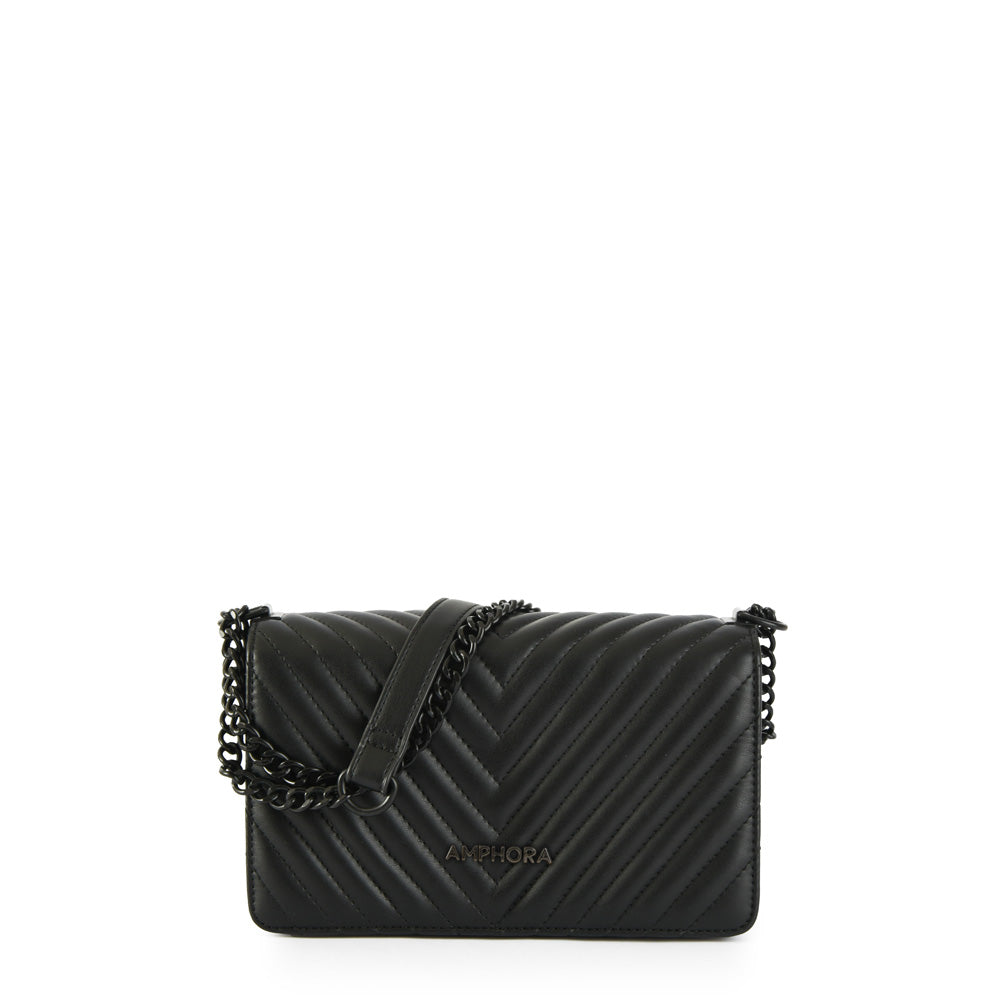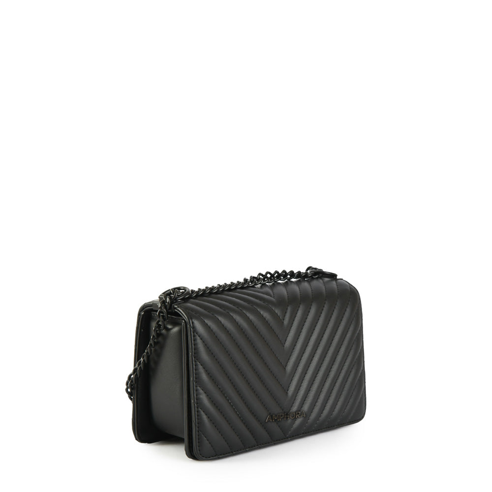 #Muller is a fashion statement. Confeccionada en cuero vegano de alta calidad, esta cartera bandolera con tapa negra es la combinación perfecta de sofisticación y durabilidad. Su diseño elegante y minimalista se adapta a tu rutina. La correa ajustable te permite llevarla cómodamente cruzada al hombro o al cuerpo, cierre con botón imantado garantiza la seguridad de tus cosas, mientras que los tres bolsillos interiores te permiten organizar tus esenciales de manera eficiente.
