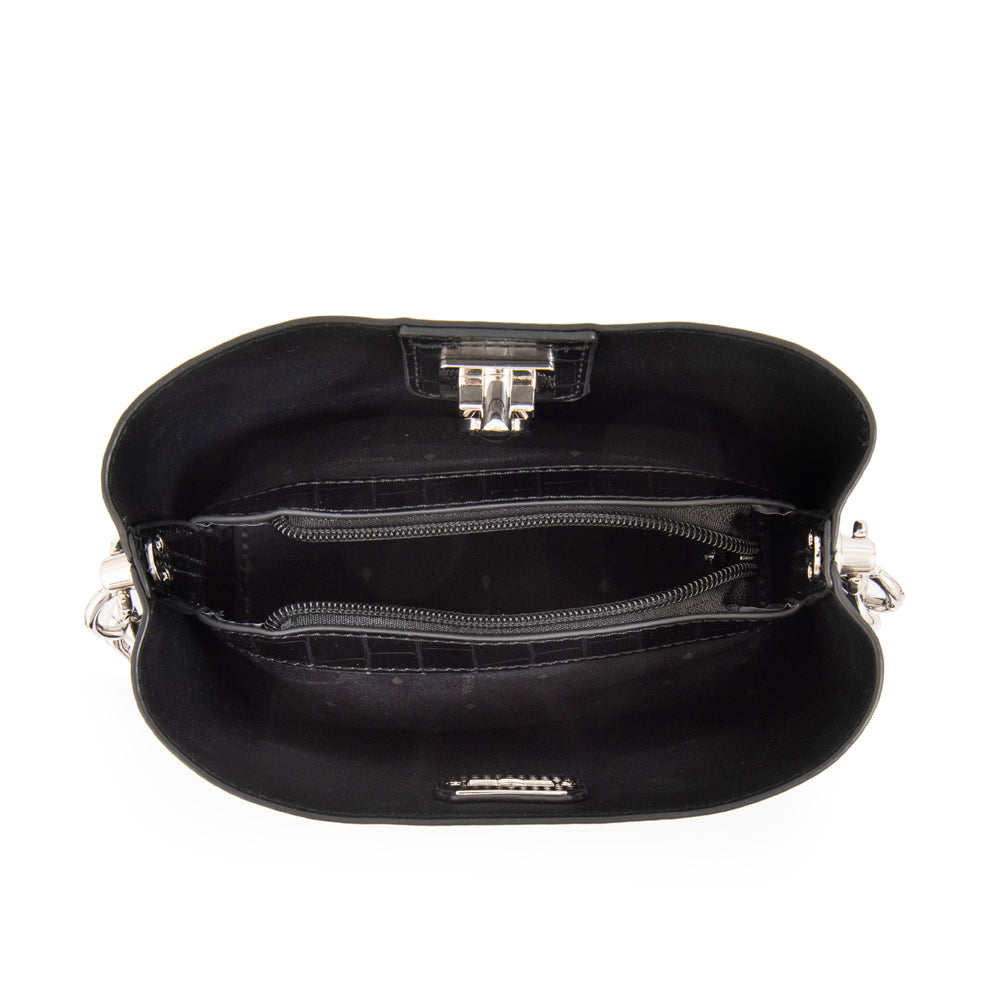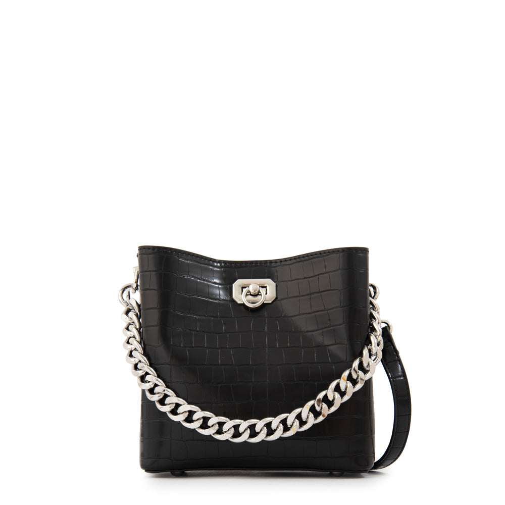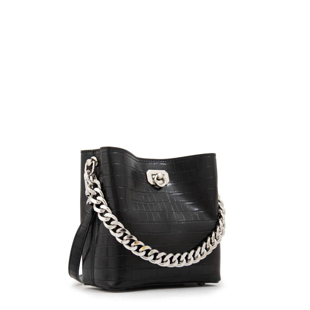 Effortless elegance, always. La bandolera pequeña Sofia en negro croco tiene el equilibrio perfecto entre elegancia y modernidad. Su textura en ecocuero croco y su colgante de cadena la convierten en un accesorio clave para quienes buscan destacar. Su tamaño compacto y correa ajustable la hacen práctica sin perder estilo. Eleva tu look con un toque sofisticado. ¡Llévala contigo!