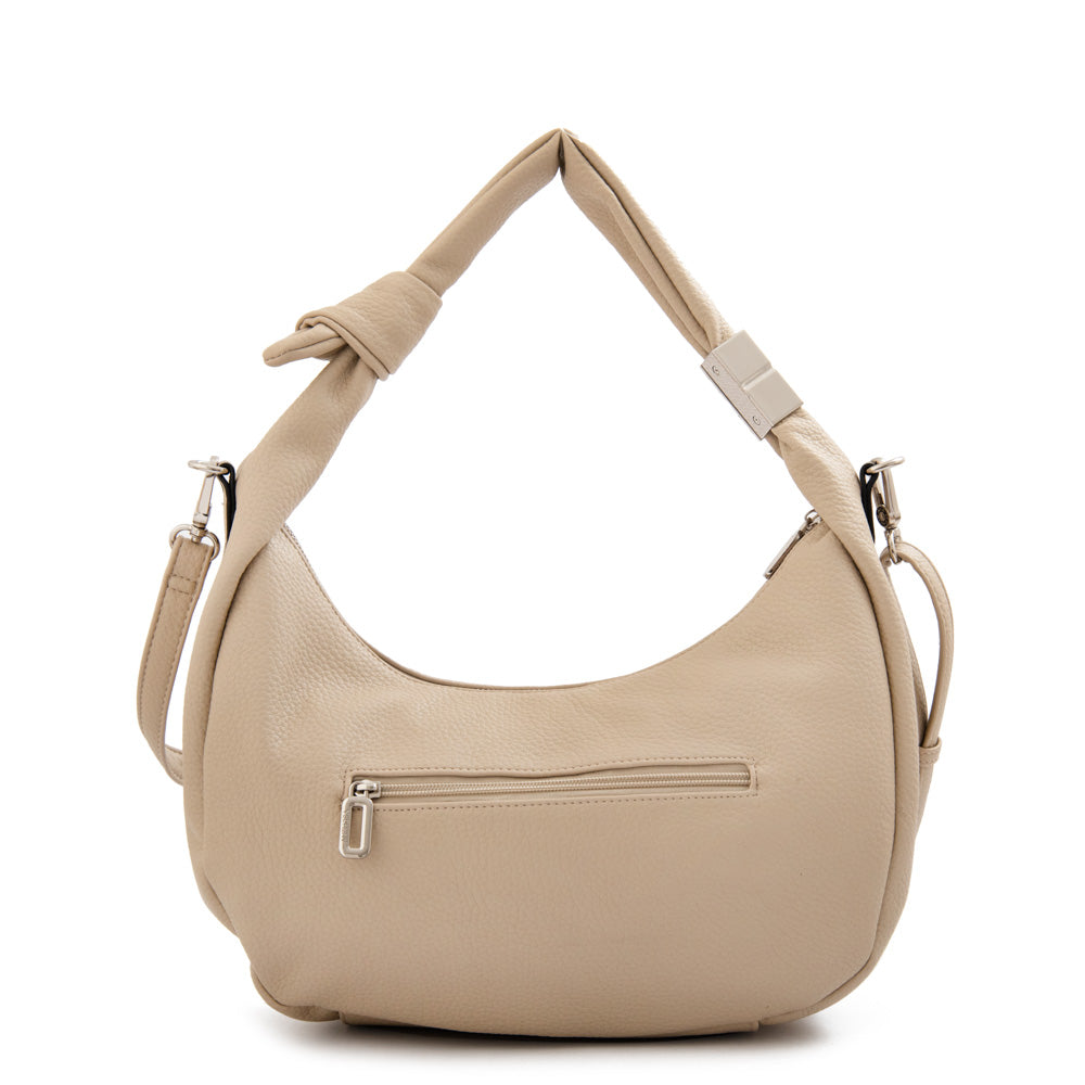 Effortless charm! La cartera Olivia en beige es sinónimo de versatilidad y estilo refinado. Su diseño en ecocuero grano con herrajes en niquelado y corte ovalado le da un aire sofisticado y moderno. Con 36 cm de alto y 34 cm de ancho, ofrece el espacio ideal para tu día a día sin perder ligereza. Su cierre seguro y asas cómodas la convierten en el accesorio perfecto para elevar cualquier look. Style & function in one bag!