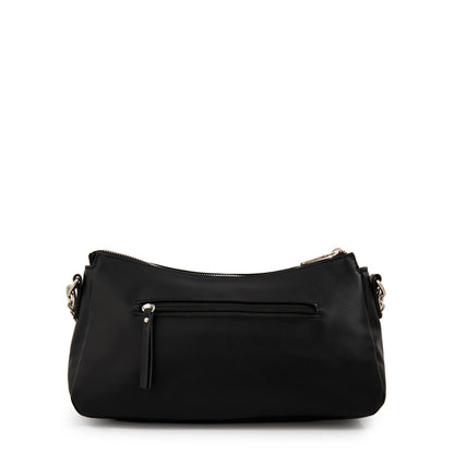 Chic & sleek, always on point. La Bonnie by Amphora en negro redefine el estilo casual sofisticado con su diseño de corte oval y detalles en ecocuero texturizado. Su colgante de cadena agrega un toque audaz, mientras que su cierre mantiene todo en su lugar. Con 31 cm de ancho y 15 cm de alto, ofrece el equilibrio ideal entre tamaño y funcionalidad. Llévala al hombro con su correa de 20 cm y haz que cada outfit se vea más cool. Black is always a good idea.