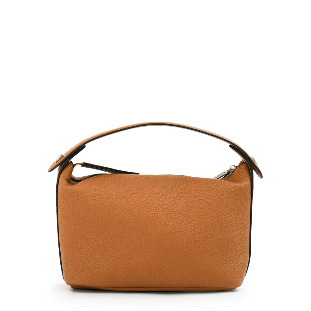 Effortless elegance! La cartera Marion en camel es el toque de calidez y estilo que tu look necesita. Su material en ecocuero grano con herrajes en niquelado resalta su diseño de corte ovalado, ideal para quienes buscan un equilibrio entre tendencia y practicidad. Con 26 cm de alto y 32 cm de ancho, su tamaño es ideal para llevar lo esencial con orden. Su cierre seguro y asas cómodas garantizan comodidad y versatilidad. Elevate your everyday style!