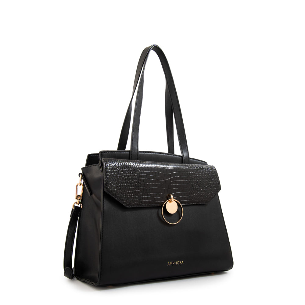 Cartera tote con tapa maggie mediana negro especial