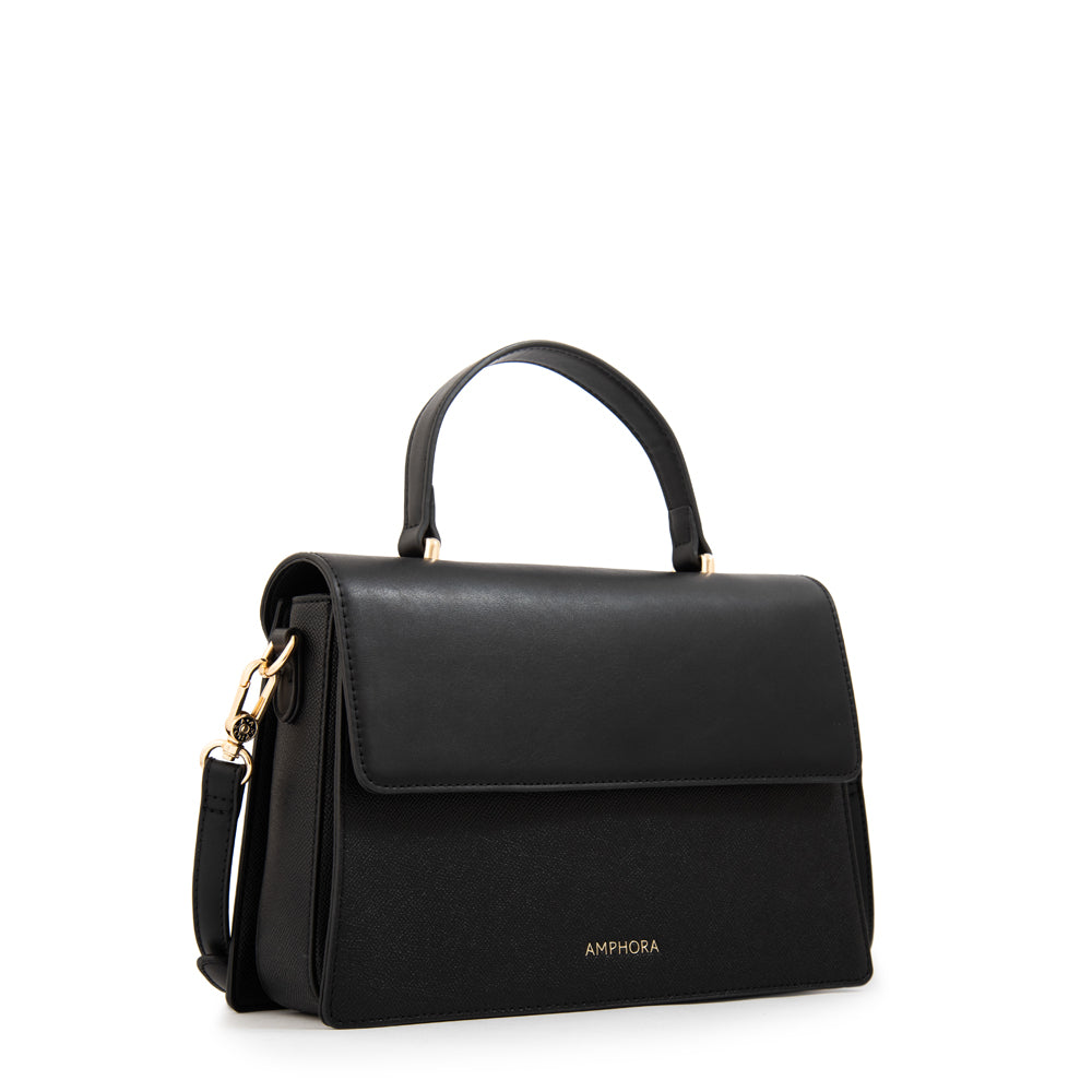 Chic and functional, all in one. La cartera Suecia en negro es ese esencial versátil que va con todo. Su diseño en ecocuero texturizado con tapa y broche imantado la hace práctica y segura. Cuenta con dos asas cómodas y un interior funcional con compartimentos que te ayudan a mantener todo en orden. Add it to your collection now!