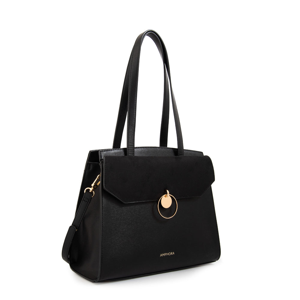 Cartera tote con tapa pequeña mediana maggie negro