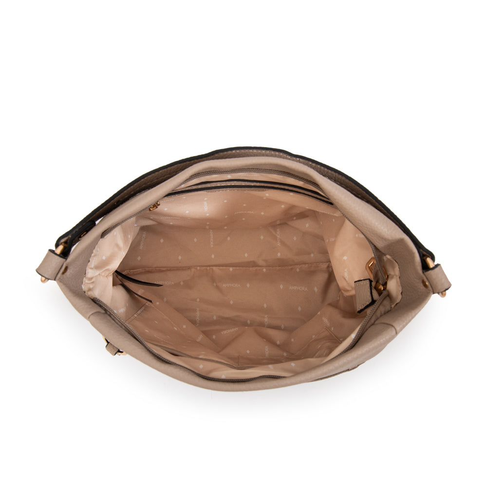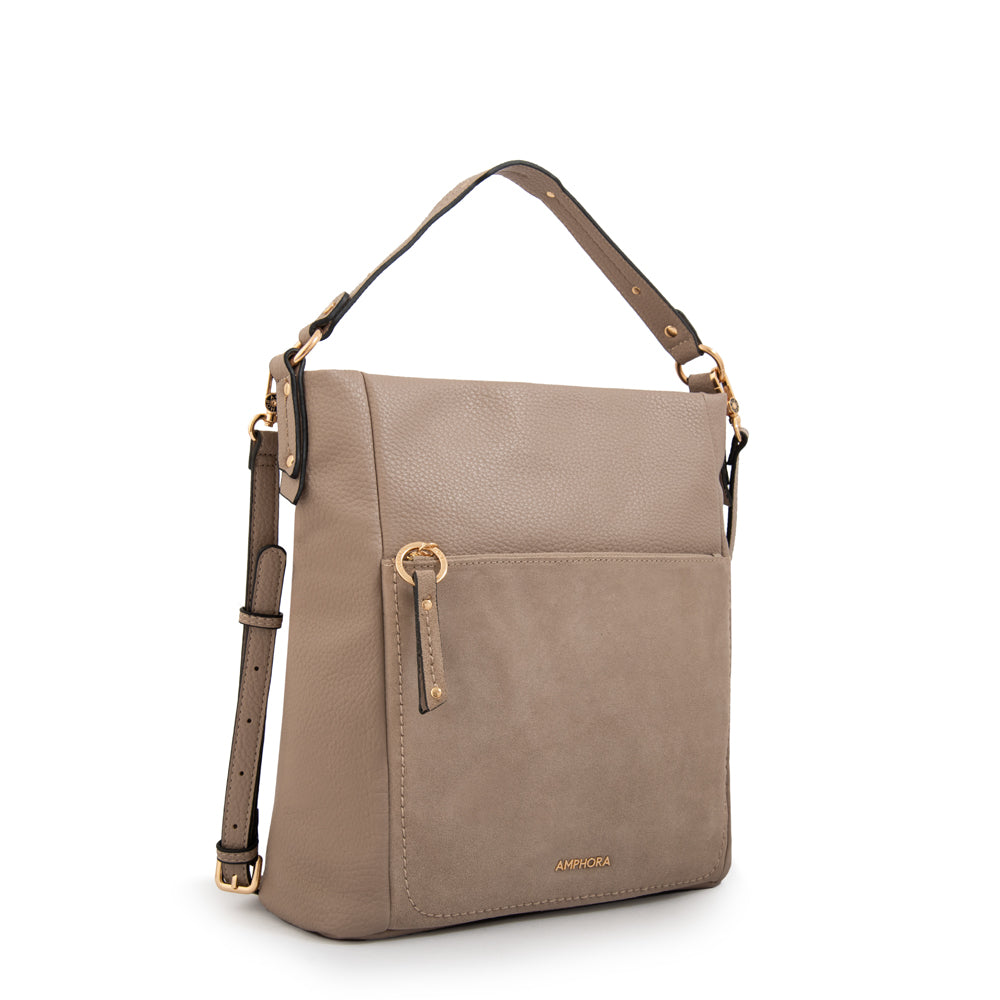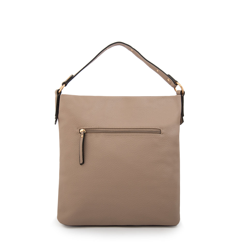 Carry your essentials, own the day! La cartera Asmara en taupe tiene el tamaño ideal para quienes buscan comodidad sin renunciar al espacio. Su estructura en ecocuero graneado le da un toque especial, mientras que sus compartimentos internos y externos mantienen todo en su lugar. Haz match con tu look y llévala contigo!