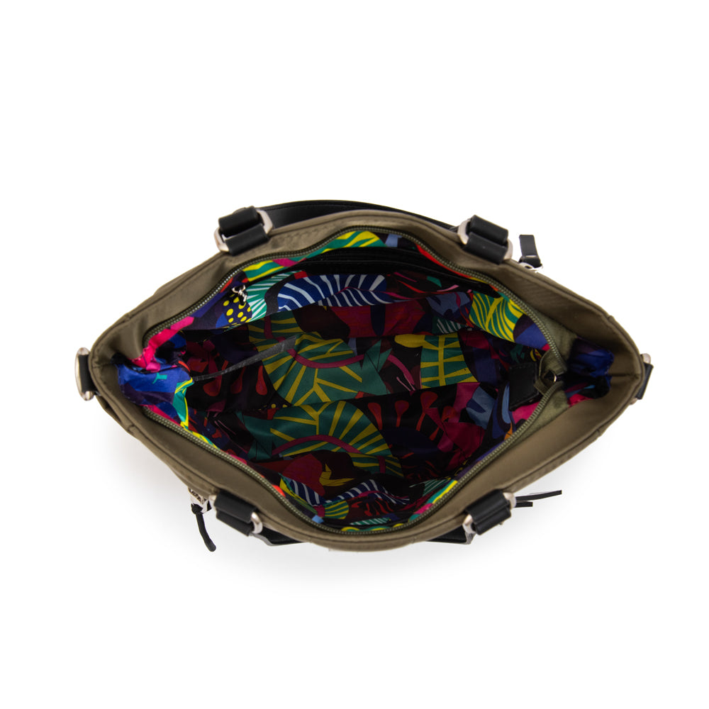 Your daily dose of style. La cartera dos asas #Belina de Trinus by Amphora es esa compañera que necesitas para cualquier ocasión. Hecha de nylon, esta tote verde oliva te permite llevar tus básicos y mucho más, gracias a sus múltiples bolsillos (¡4 afuera y 3 adentro!). Además, es strap ajustable y extraíble más sus dos asas cortas te dan la libertad de usarla como quieras. ¿Un toque extra? El accesorio hanging le da un toque único a tu look. wake up your true style with #Belina.