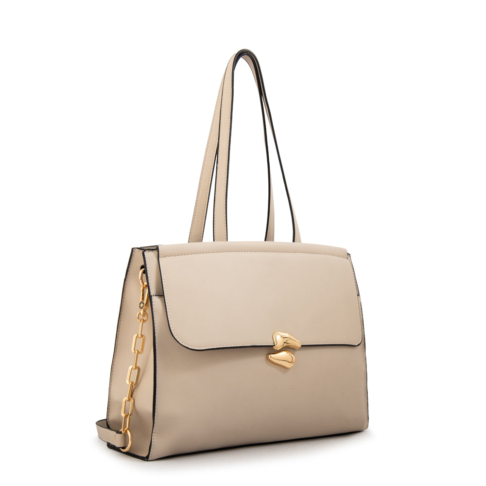 Elegance on the go. Si buscas un accesorio sofisticado pero funcional, la cartera dos asas Lizet en blanco crudo es la elección perfecta. Confeccionada en símil cuero con herrajes dorados, cuenta con cierre con botón imantado, amplio interior y correa removible para mayor comodidad. Un diseño atemporal que se adapta a cada ocasión. #Lizet ¡Agrégala a tu colección!