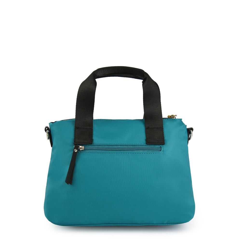 Como una clásica cartera dos asas pero mejor, Melodie es uno de esos accesorios que es casi como una extensión de nuestro cuerpo.Es cofeccionada en Nylon, es de tamaño mediana y cuenta con una cierres y cordones que le da el toque chic and cool Posee un compartimiento externo con cierre y tres internos. Posee una correa ajustable y un mango para llevarla como tu quieras. Esta cartera es un fashion statement!