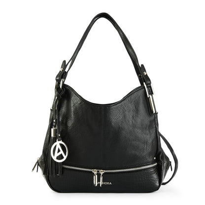 Like a boss, Adelfa es esa cartera dos asas tres divisiones que quieres tener para todas tus salidas. Su tamaño es mediano y además de sus asas tiene una correa que se adapta al largo que quieras y también es desmontable para combinarla con alguno de nuestros Amphora longstraps. Tiene un diseño y detalles de estilo clásico y moderno a la vez que la hacen única. Tiene tres bolsillos interiores, un bolsillo exterior, cierre y broche magnético. Su borla de cuero o hanging le aporta un fashion edge sin discusión.