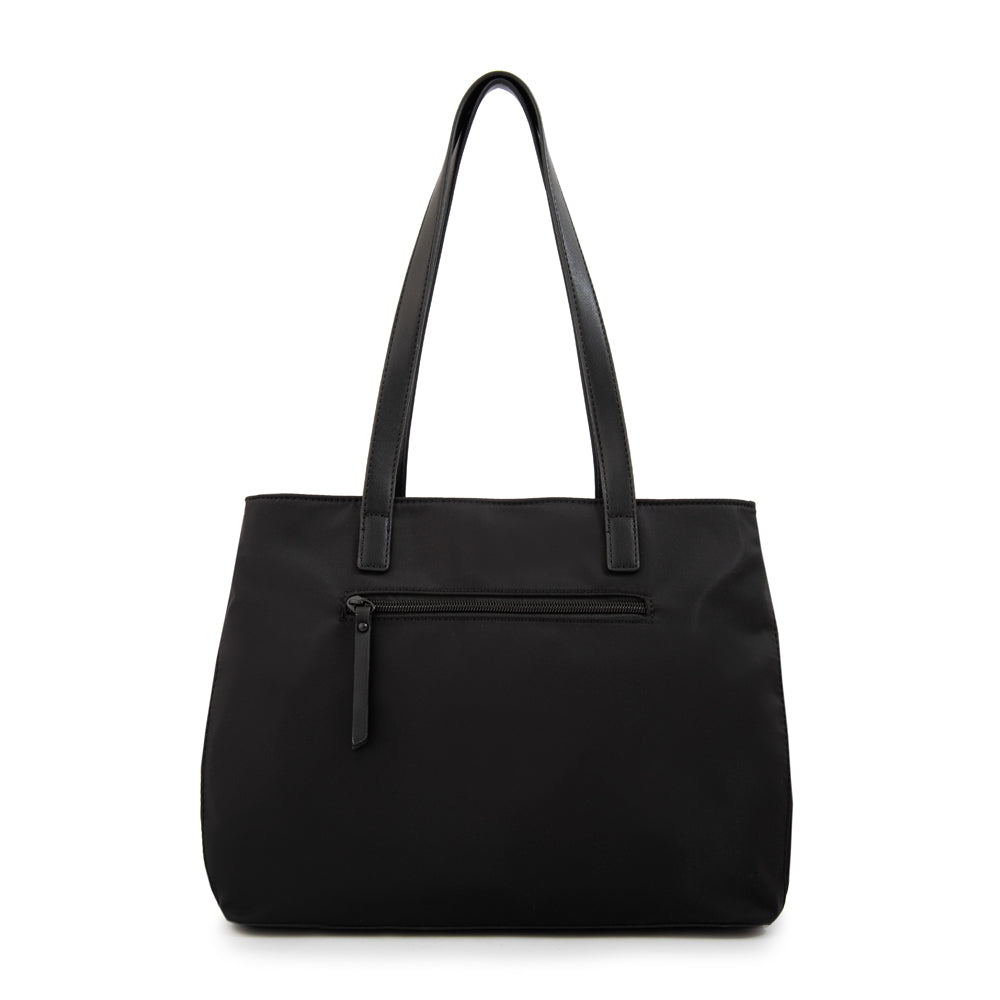 Make space for more! En su versión de nylon negro especial, la cartera Paula combina ligereza y capacidad en un solo diseño. Con tres divisiones internas, cierre seguro y dos asas cómodas, es la opción ideal para quienes buscan practicidad sin renunciar al estilo. Suma este infaltable a tu rutina y muévete con total libertad.