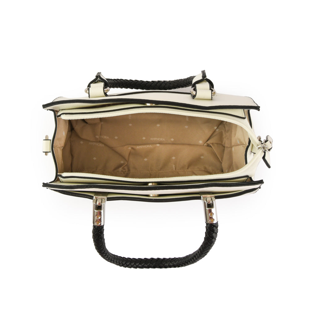 Like a boss, Rosine es esa cartera dos asas tres divisiones, que quieres tener para todas tus salidas. Este modelo confeccionado en ecocuero graneado, es de tamaño pequeña y cuenta con un predominante mango que te dará ese toque sofisticado que solo algunas ocasiones ameritan. Además, viene con un strap por si quieres llevarla cruzada por la ciudad. Posee tres bolsillos interiores y un bolsillo exterior para organizar todos tus esenciales. Si quieres un bolso que resalte a todo momento, Roise is the one!