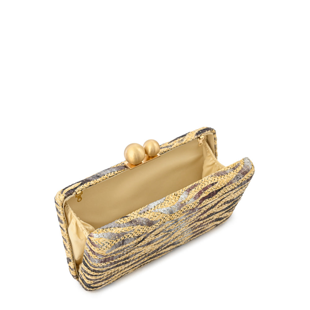 El bolso de fiesta Milani by Amphora, es un accesorio elegante y sofisticado, diseñado para complementar atuendos formales y de noche. Confeccionada en Yute y de tamaño pequeña, su diseño es neutro y versátil, lo que la convierte en una opción ideal para cualquier evento especial, añadiendo un toque chic a tu look.