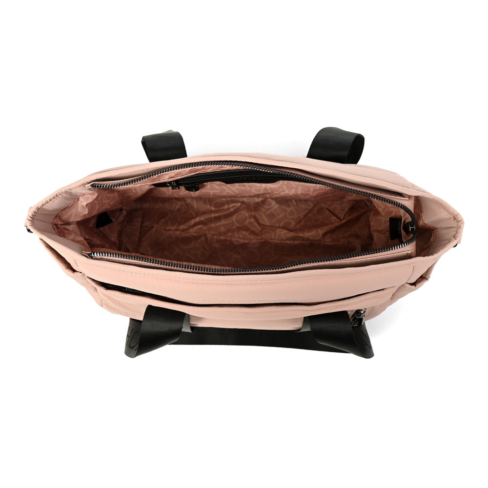 Nuestra cartera Simona de dos asas, confeccionada en nylon acolchada, es una de nuestras favoritas. Este modelo de Amphora, de tamaño grande, es ideal para viajes, el gimnasio o esos días en los que necesitas llevar todo en un solo bolso. Sus dos asas predominantes y su strap grueso para llevarla cruzada, ofrecen comodidad y facilitan su movimiento por la ciudad. En color rosa viejo con mangos negros, su diseño sport-chic la convierte en la partner perfecta para acompañarte a donde vayas.