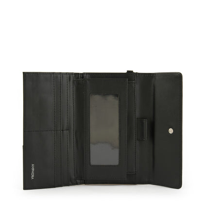 Nuestra billetera estilo chequera con flap Noix tiene todo pensado para guardar todos tus esenciales de la vida. Su estilo minimalista y confeccionada en PU graneado, a hacen muy funcional y a la moda. Su tamaño grande es ideal para cualquier cartera o mochila. Su abertura es a través de un broche a presión y su interior tiene porta tarjetas, porta billetes y un bolsillo con cierre. Además, sus tachas color gold le dan el touch para brillar! We love it!
