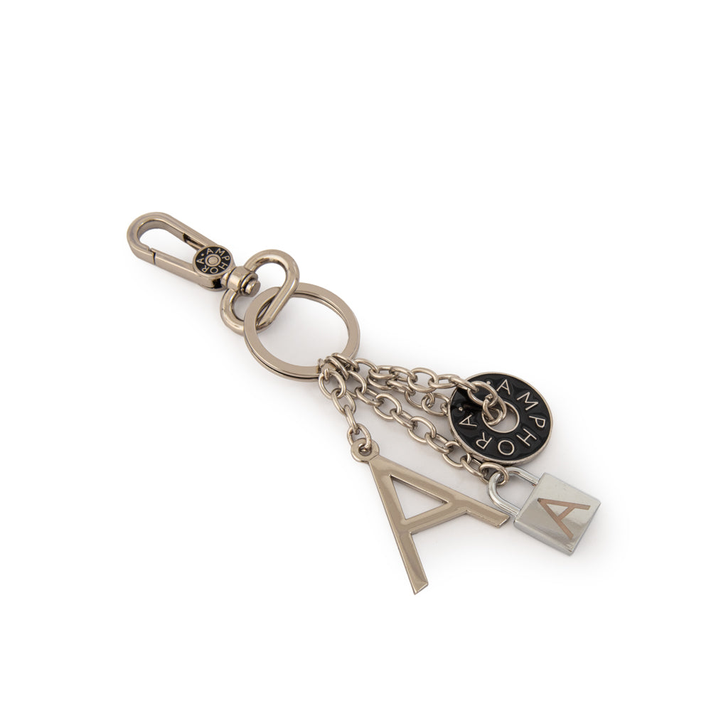 El llavero Aria combina diseño minimalista y estilo con su charm en forma de letra "A" y un candado metálico. Un accesorio elegante y versátil para personalizar tus llaves o bolso.