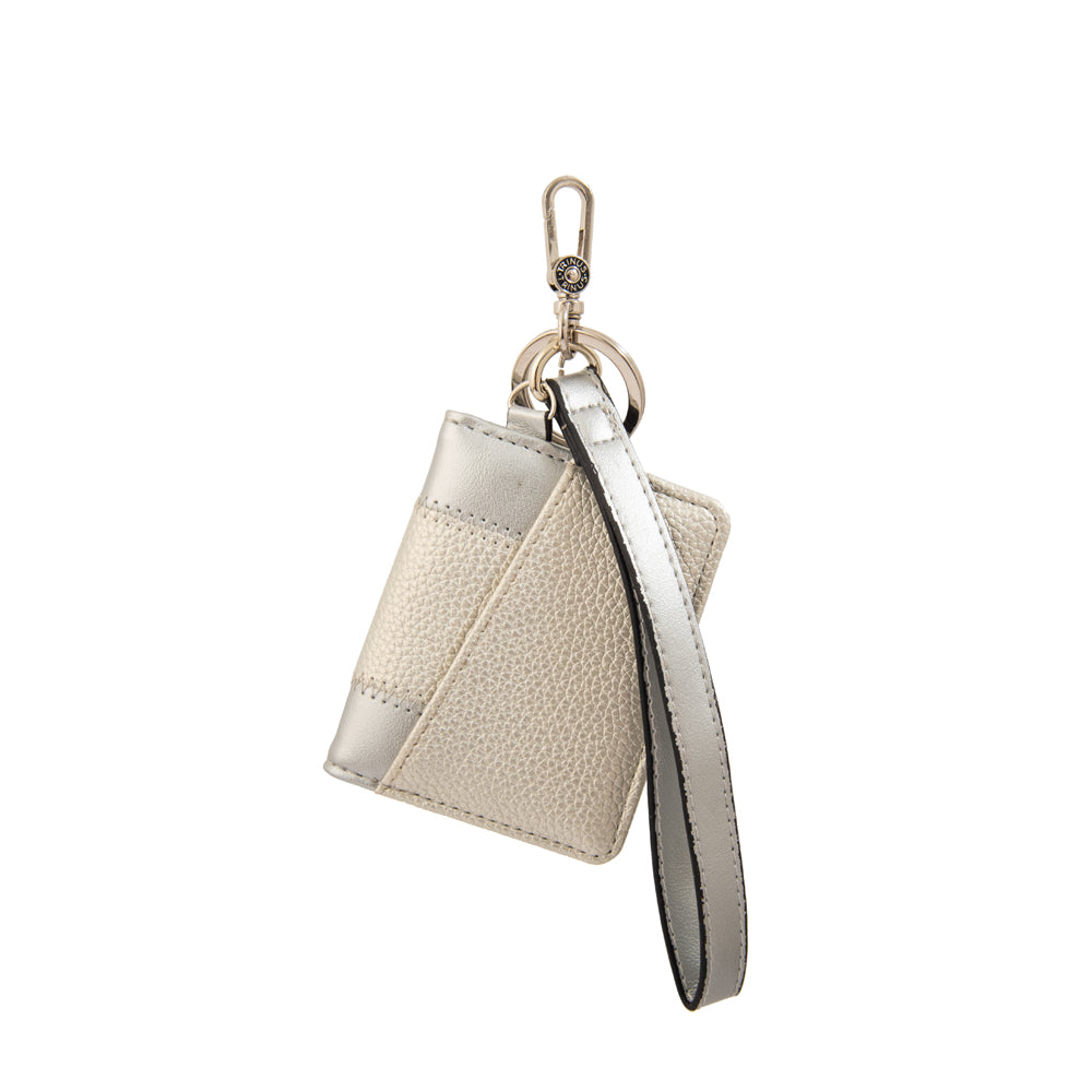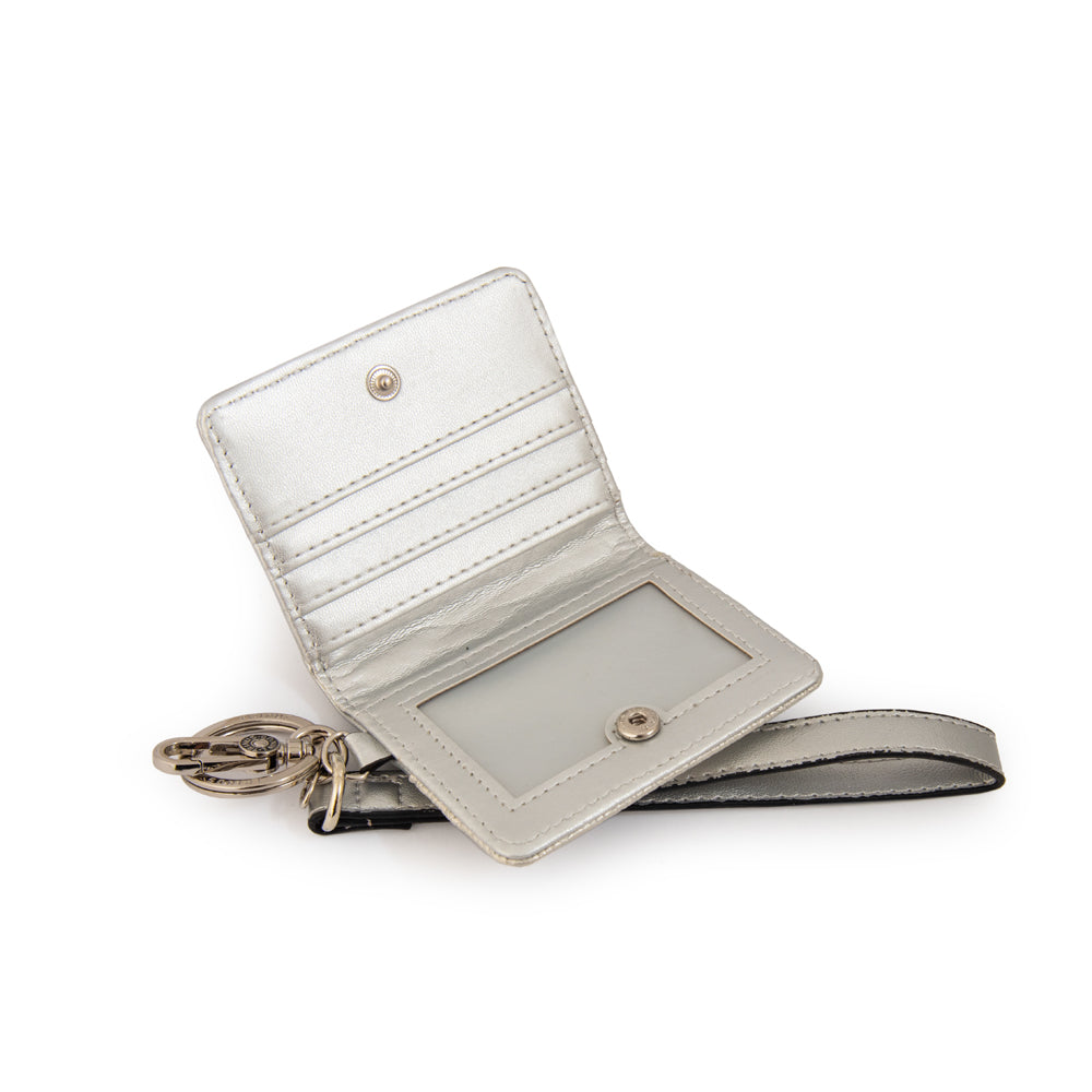 For everyday explorers! El hanging tarjetero Kristah en color plateado es pequeño, pero muy funcional. Pertenece a la colección Trinus y está confeccionado en PU. Cuenta con compartimientos ideales para llevar tus tarjetas y documentos de forma ordenada. Con gancho silver y un diseño minimalista, es el complemento perfecto para combinar con cualquier bolso.