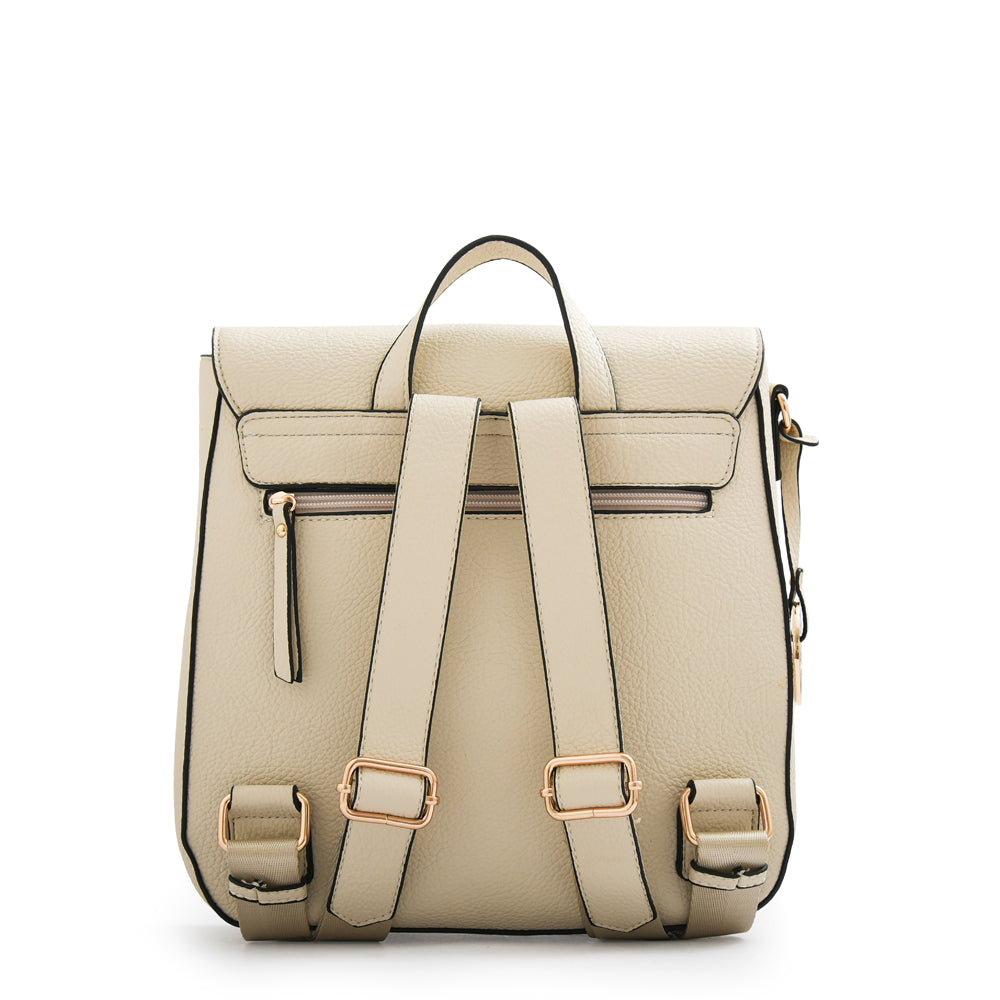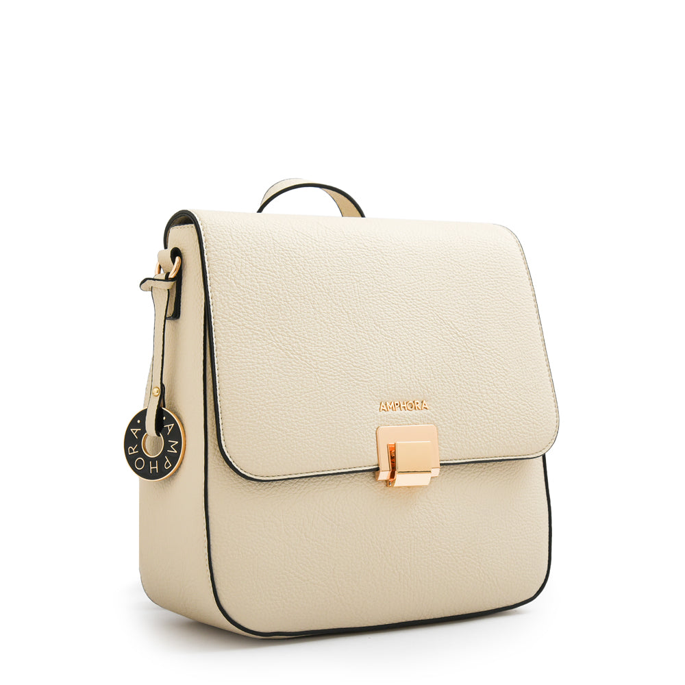 Ready to explore? La mochila Elois en blanco crudo es el equilibrio entre lo casual y lo práctico. Confeccionada en ecocuero grano, tiene una estructura cómoda con tapa y broche imantado que resguarda lo esencial. Su tamaño mediano y correas ajustables la convierten en un básico para quienes buscan libertad en el día a día. Súmate a la comodidad sin perder estilo.