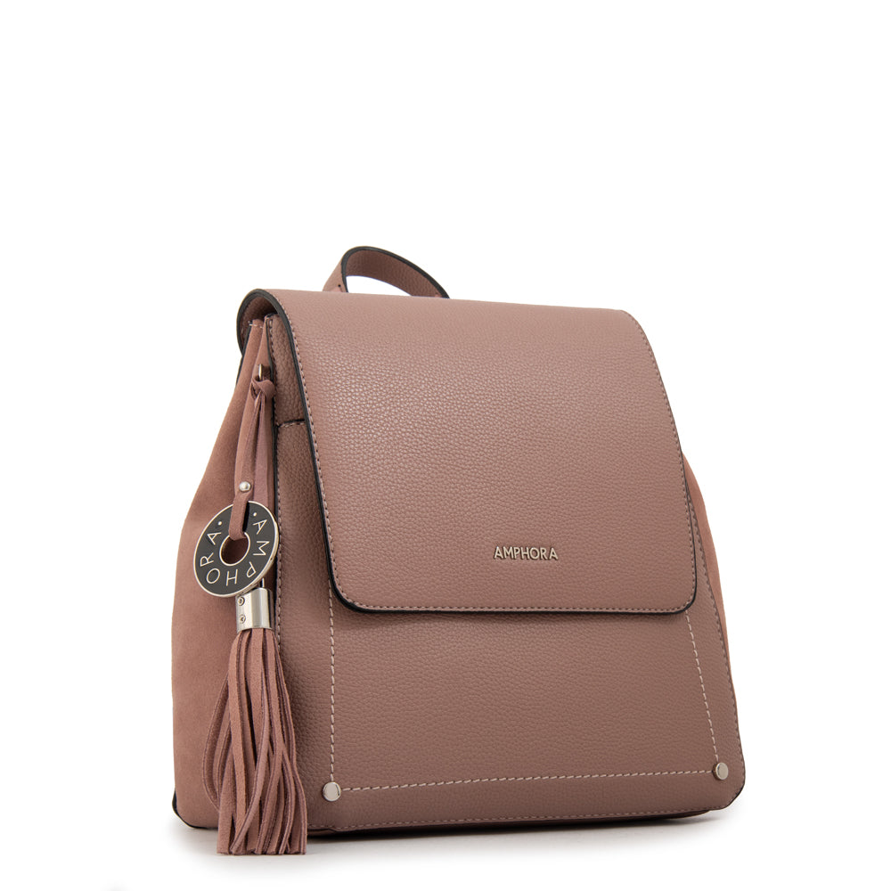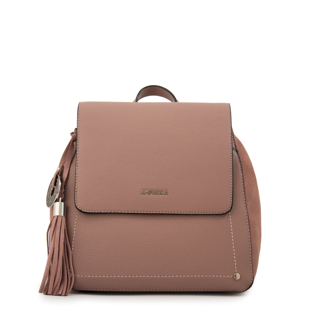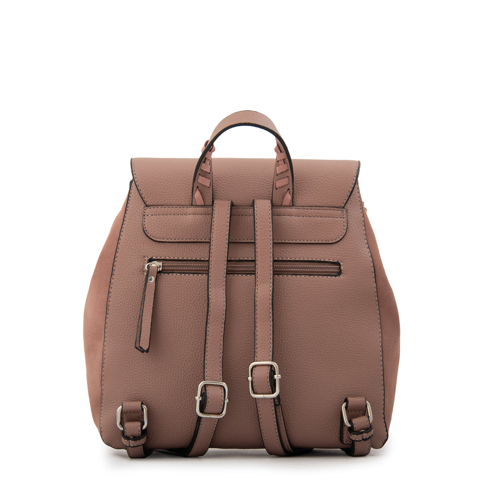 Lightweight, stylish & functional. La mochila Etiopía en rosa viejo combina un diseño práctico con un color sutil y sofisticado. Su material en ecocuero texturizado con herrajes en niquelado la hace resistente y ligera. Con un tamaño de 28 cm de alto por 28 cm de ancho, tiene espacio suficiente para llevar lo esencial sin perder comodidad. Su cierre con broche y sus correas ajustables hacen que sea tan segura como versátil. Ready for your next adventure?