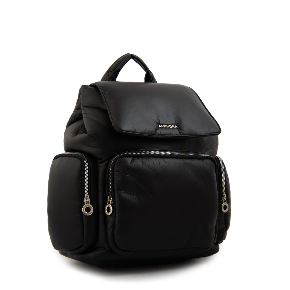 Your everyday essential! La mochila Jenifer en negro es la combinación perfecta entre estilo urbano y funcionalidad. Confeccionada en ecocuero liso con detalles en niquelado, su diseño estructurado de 30 cm de alto y 29 cm de ancho te da el espacio justo para llevar todo lo que necesitas sin perder comodidad. La solapa con botón imantado y su cierre seguro mantienen todo protegido, mientras que sus correas ajustables garantizan un ajuste perfecto. Llévala contigo y haz que cada día sea más práctico y con más estilo!