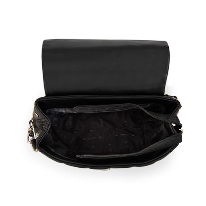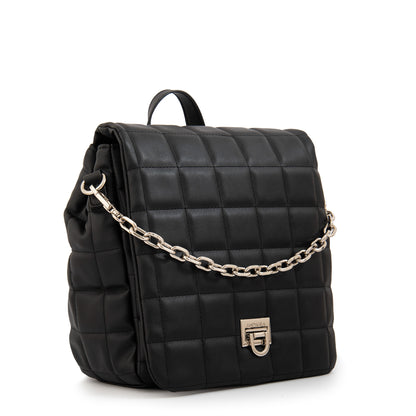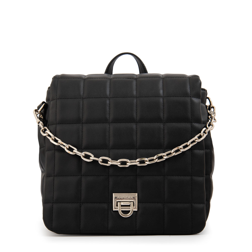 Obsessed with #Grecia la mochila con tapa que le da un toque chic a tu día a día. Confeccionada en cuero vegano, esta mochila negra de 10 litros es la compañera perfecta para quienes buscan practicidad y estilo en un solo accesorio. Su diseño minimalista y elegante es ideal para llevar tus esenciales al trabajo, a la universidad, al gimnasio o a donde sea que te lleve tu rutina. El cierre con broche le da un toque de distinción, mientras que sus múltiples bolsillos (1 exterior y 3 interiores) te permiten organizar tus pertenencias de forma eficiente. Ligera y cómoda, es perfecta para el uso diario. Si buscas una mochila negra con un toque trendy y un tamaño práctico, #Grecia es tu elección.