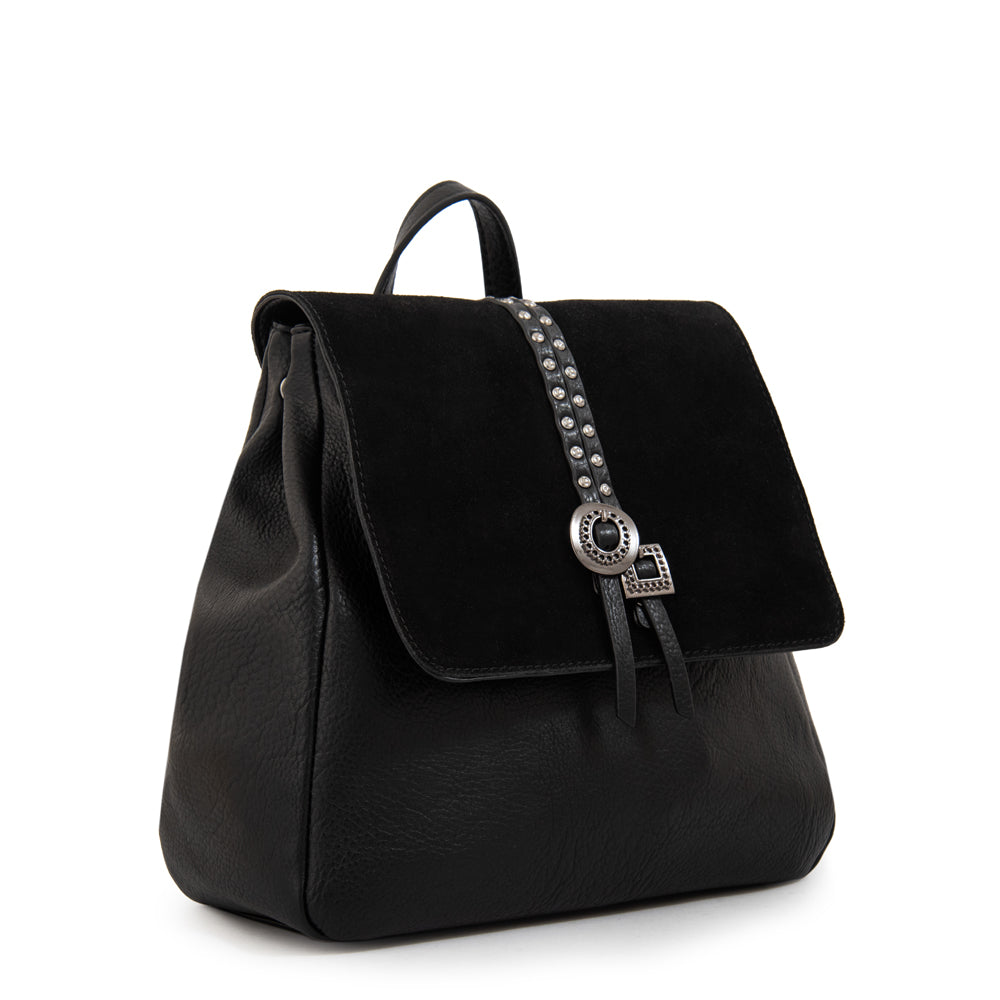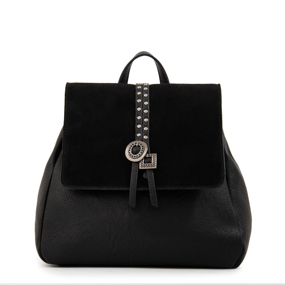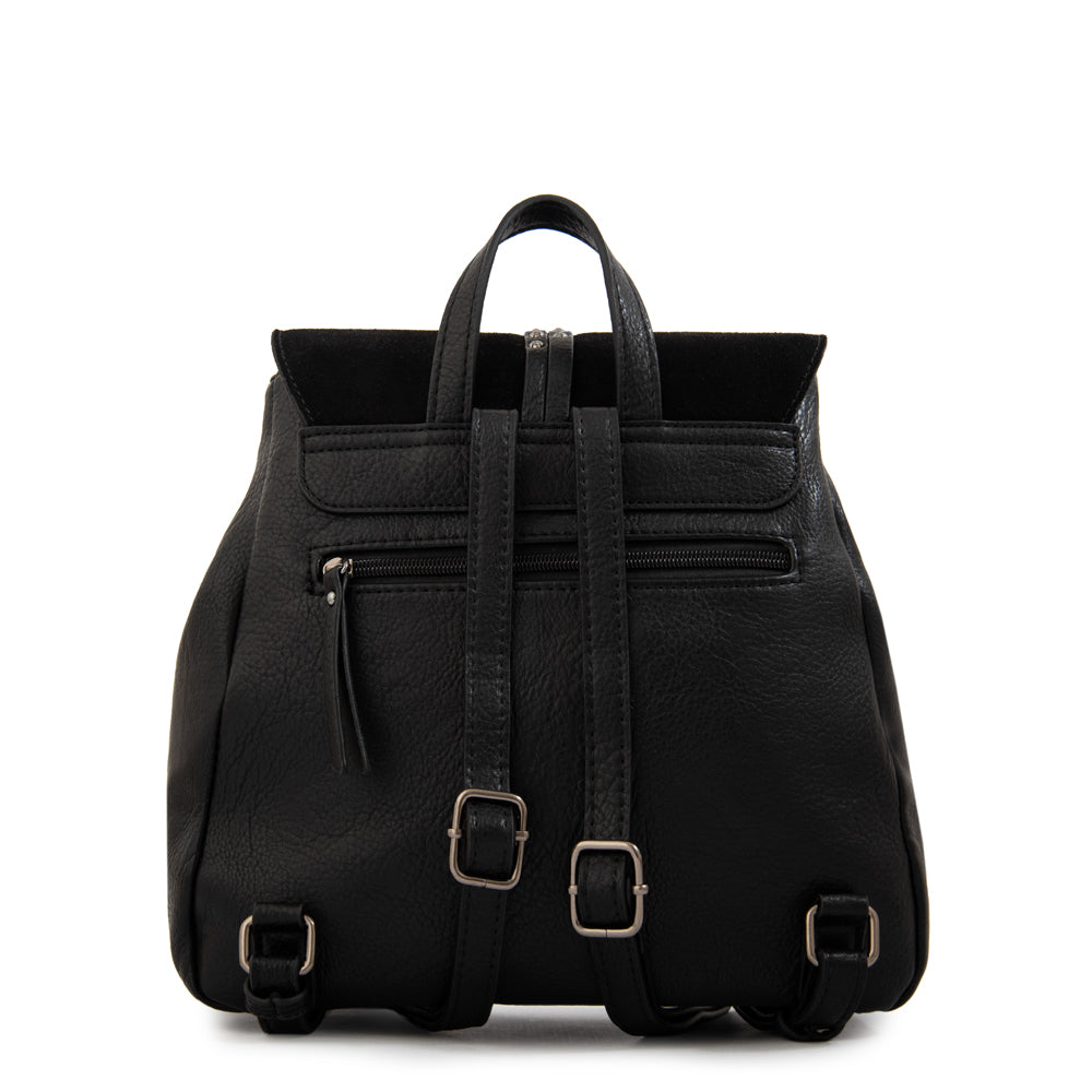Pack & explore! La mochila Indonesia en negro especial es sinónimo de practicidad. Con su estructura mediana, múltiples compartimentos y diseño en ecocuero texturizado, es ideal para quienes necesitan moverse sin complicaciones. Su tapa con cierre imantado y sus correas ajustables la hacen cómoda y segura para cualquier ocasión. Add it to your collection today!