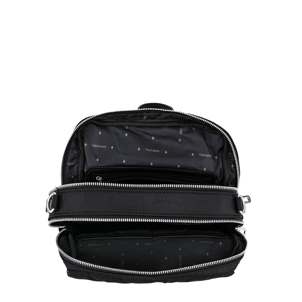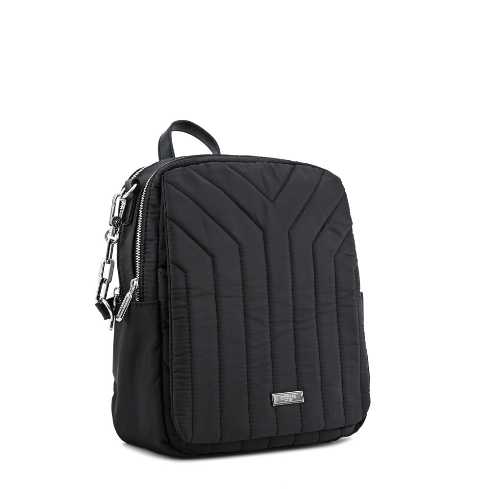 Pack smart, move free. En su versión de nylon negro especial, la mochila Armenia mantiene la comodidad y el diseño liviano. Perfecta para el día a día, con cierre seguro y compartimentos funcionales. Un toque sporty que combina con todo.