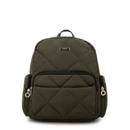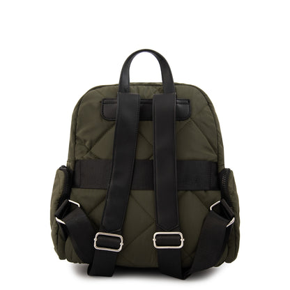 Urban vibes only! La mochila Laurie en verde oliva se adapta a cualquier aventura con su diseño ligero y versátil. Confeccionada en nylon y detalles en niquelado, su estructura de 31 cm de alto y 32 cm de ancho ofrece espacio suficiente para llevar lo esencial. Su cierre seguro y correas ajustables garantizan comodidad en todo momento. Lista para acompañarte donde vayas!
