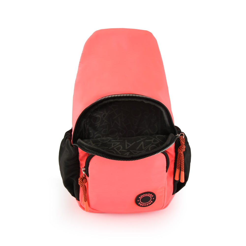 La mochila Montse tiene todos los atributos para ser tu compañera incondicional, su diseño ultra moderno y sport, le añadirá un look casual a tu outfit. De tamaño mediana, cuenta con tres bolsillos internos y su apertura es con cierre que une y separa sus mangos, para llevarla como tu quieras. Confeccionada en Nylon. Montse, you are the one!